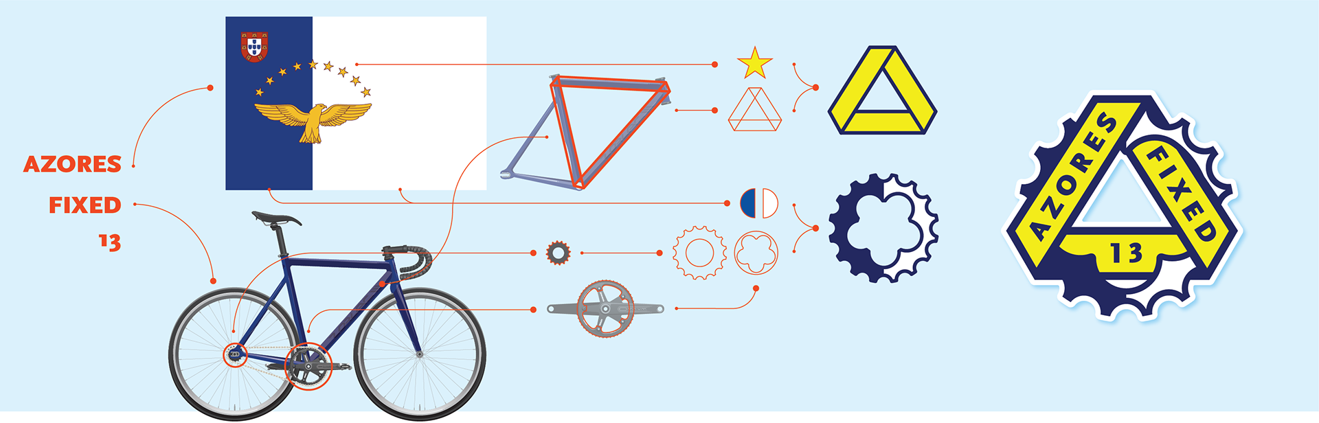 As showed bellow I break up and rejoined the main elements from the Azores' flag and a fixed gear bicycle.