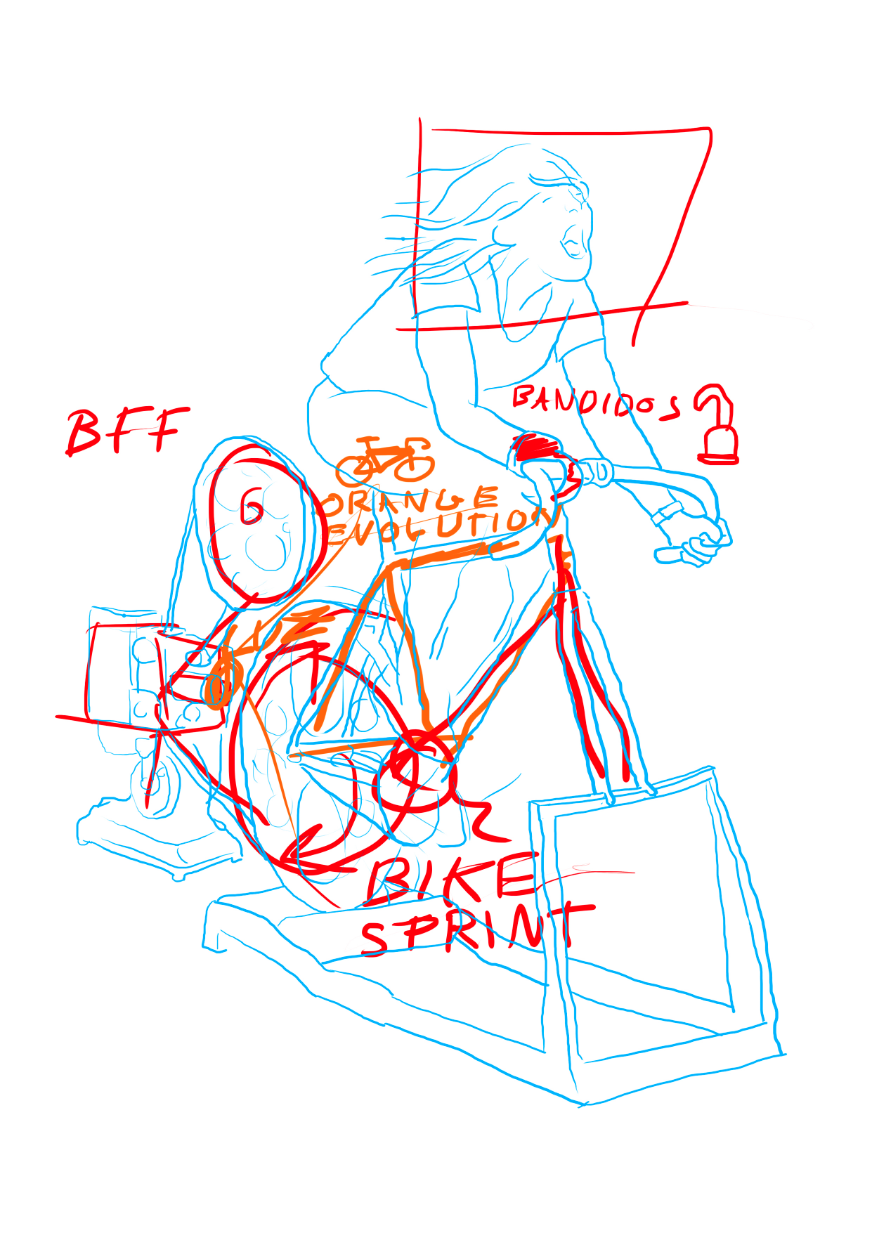 I drew a hook for being the symbol used by the Bandido$, I painted the orange bike, related to the Orange Evolution and with the bicycle as a symbol of evolution.
