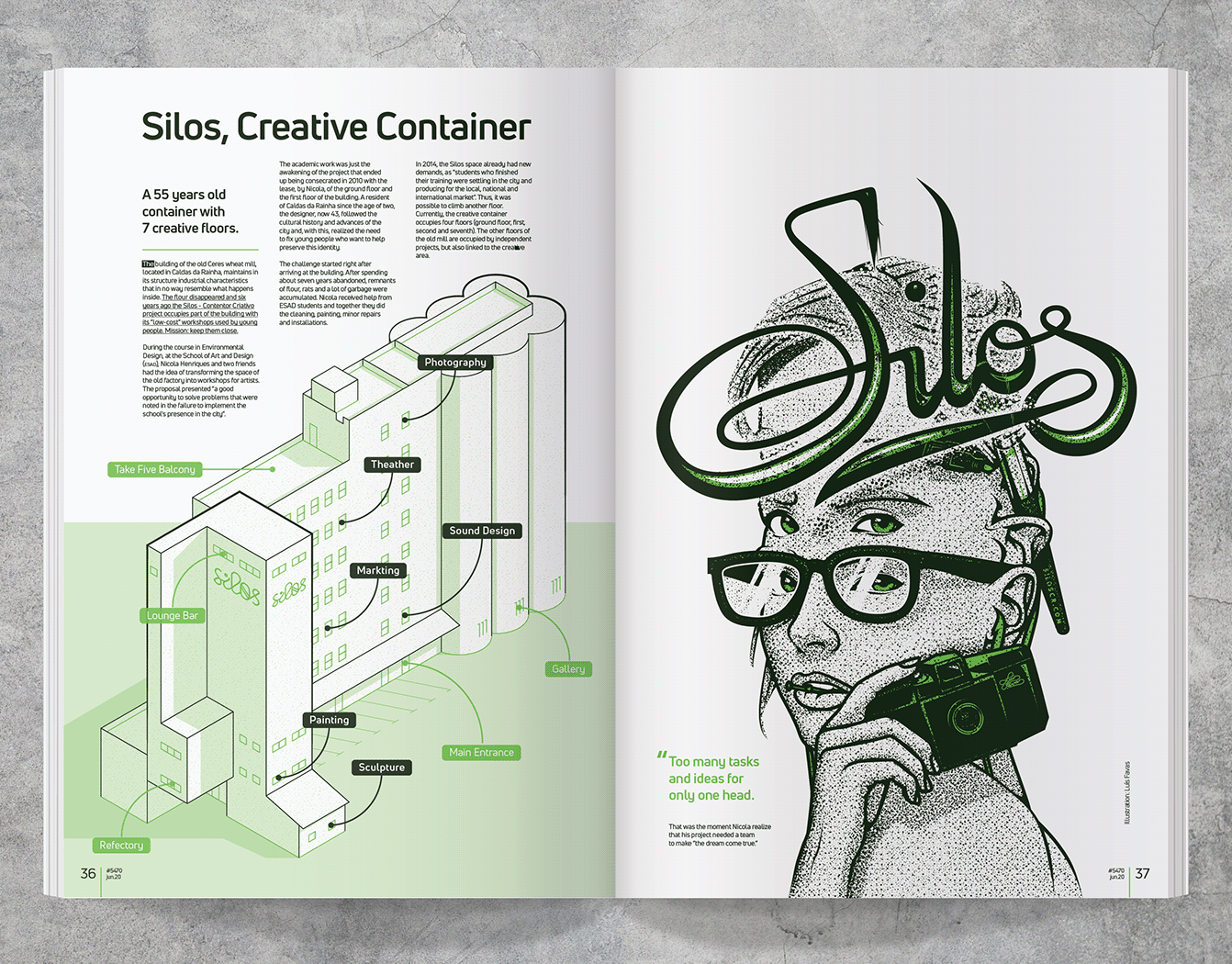In each city: Porto, Barcelos, Coimbra, Caldas da Rainha, Lisbon and Évora. In addition to a conference program where some of the representatives of Portuguese graphic design were in conversation with the public and presented their work and projects. An exhibition brought together several pieces of design, from the most varied areas, always with the aim of promoting the best of what is done in this area in Portugal. Inspiring students, freelancers, designers, and educating the general population what graphic design is about.