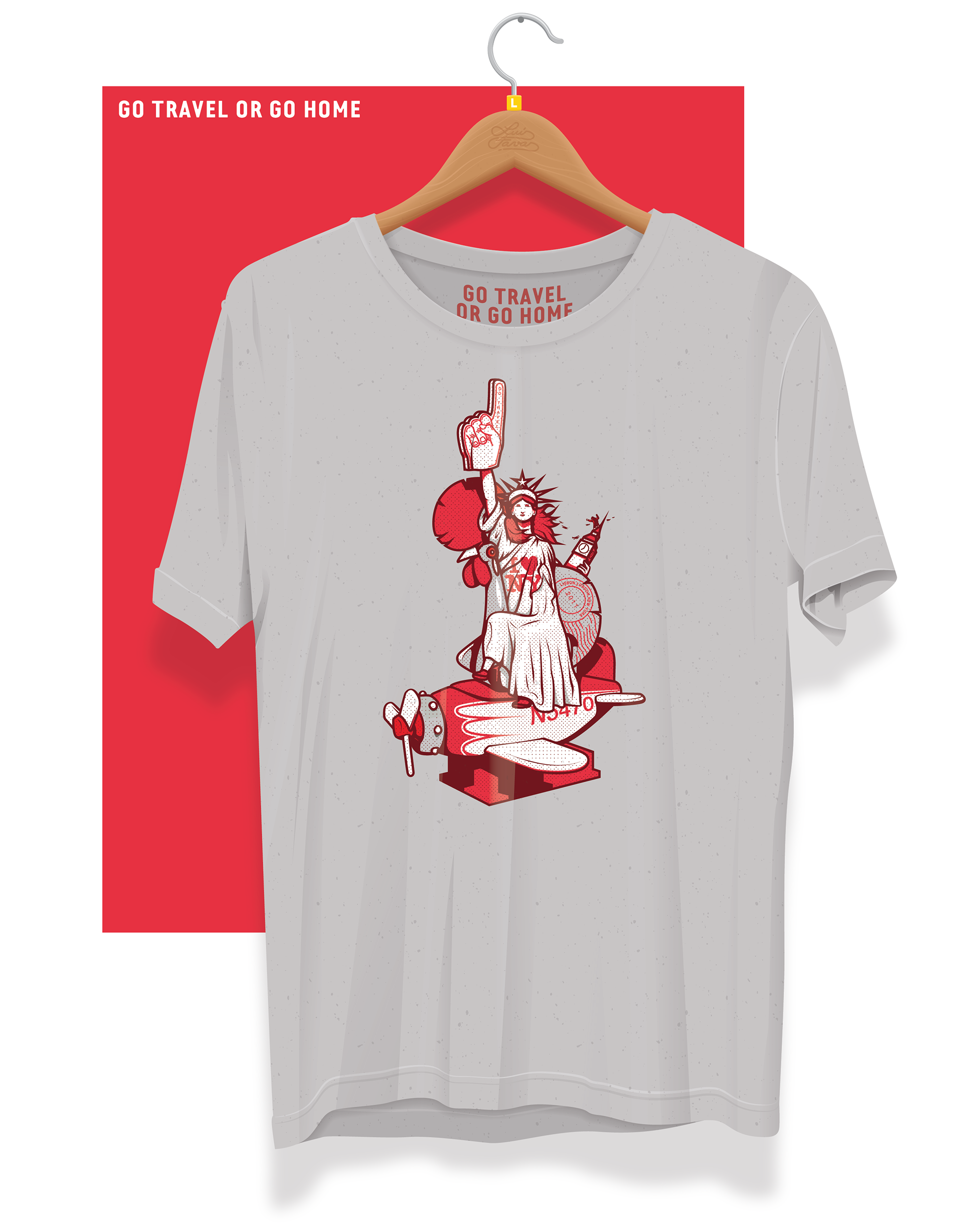 The main goal was to have my own touristic t-shirt with an illustration that depict icons from Portugal, London, New York and few personal details.