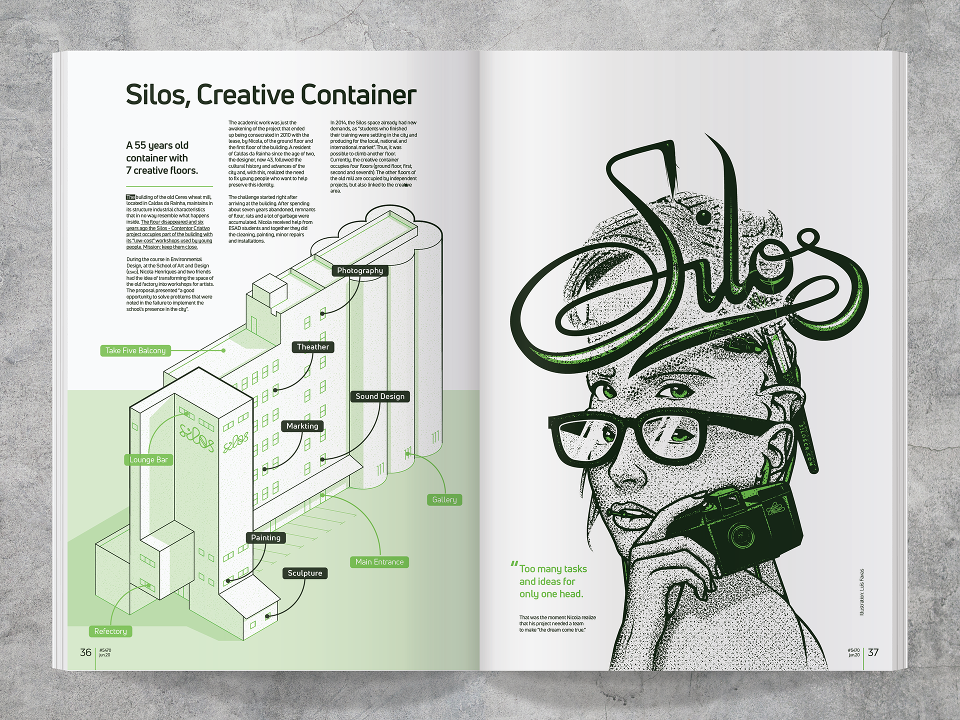 The idea of 6 eyes head was to represent the building and what was been created there. The idea that a multidisciplinary creative need to have different set of eyes/approach to different problem or task in hands and plus he/she need to have different layers of knowledge.
