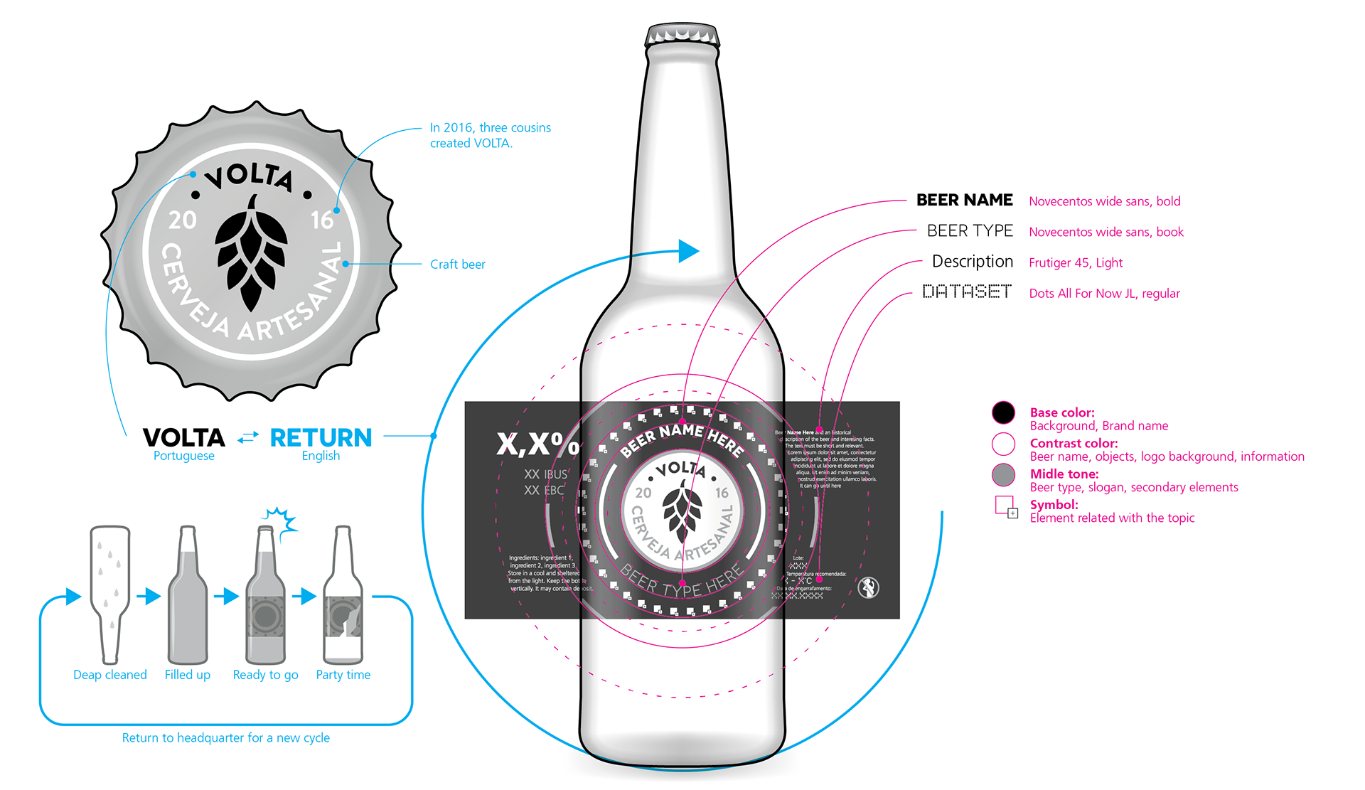 The name Volta, meaning "Return" comes from the idea of giving the beer to friends and have in return the bottles and their feedback.